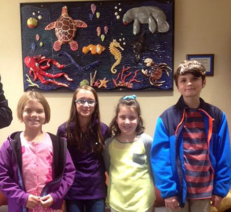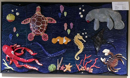 The Under the Sea mural was created by students at Sawmill Pottery during the summer of 2014 and donated to the Oncology department at Day Kimball Hospital in September, 2014. The kids came up with the concept and designed and created all the pieces.